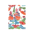 沖縄の草から生まれた月桃紙の絵はがき。(1枚) 扇と流水 (紅型古典柄のプリント)